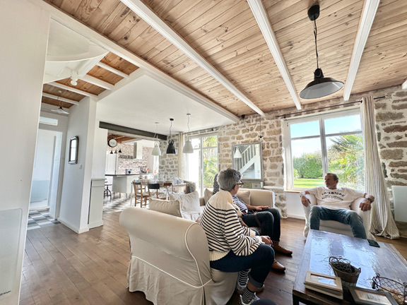 Die Küche im Maison Tarte au Miel ist ein weiteres Highlight des Ferienhauses und besticht durch ihre einzigartige Gestaltung. Sie befindet sich in einer Art Wintergarten, ist rundum von Fenstern umgeben und bietet somit einen traumhaften Blick in den wunderschönen Garten.