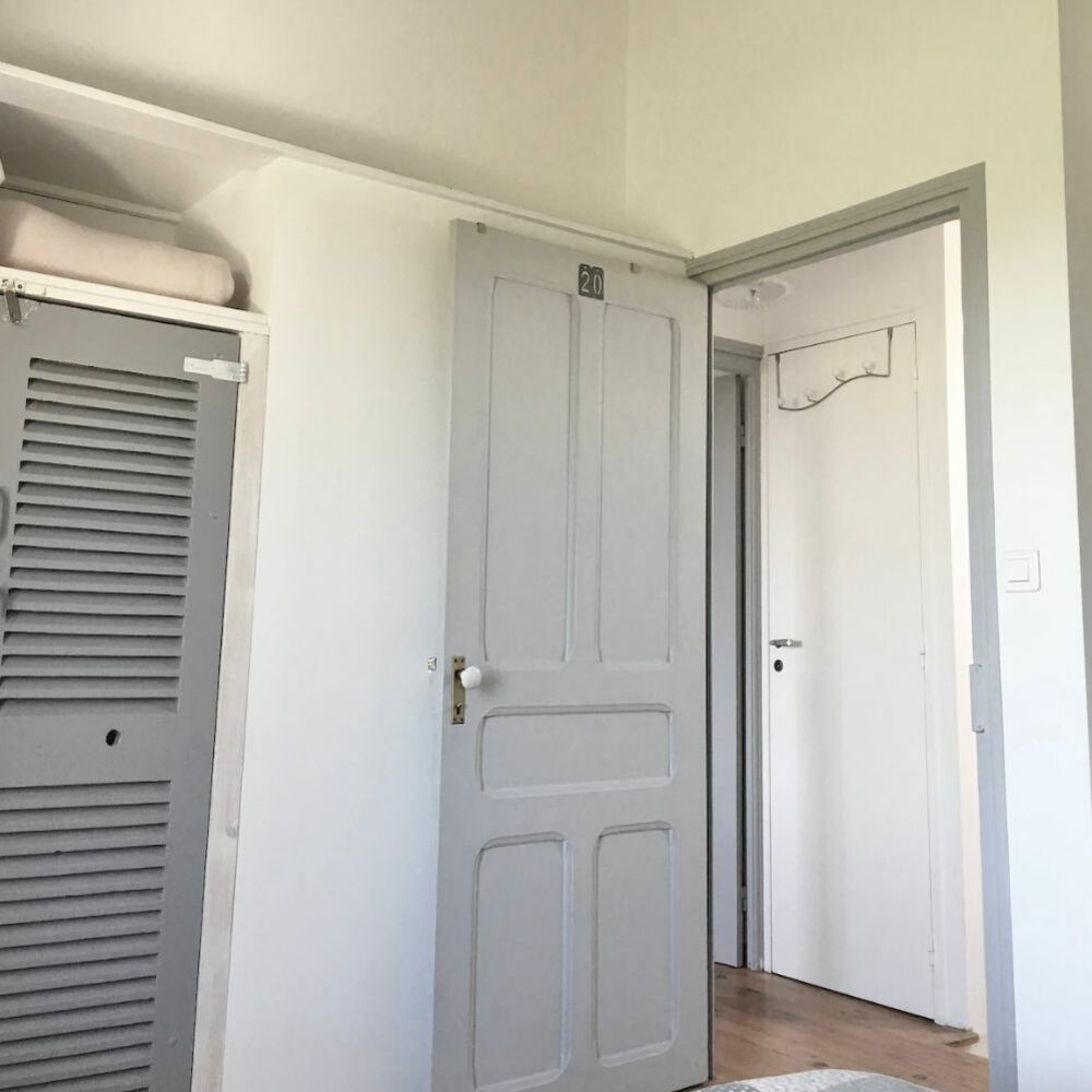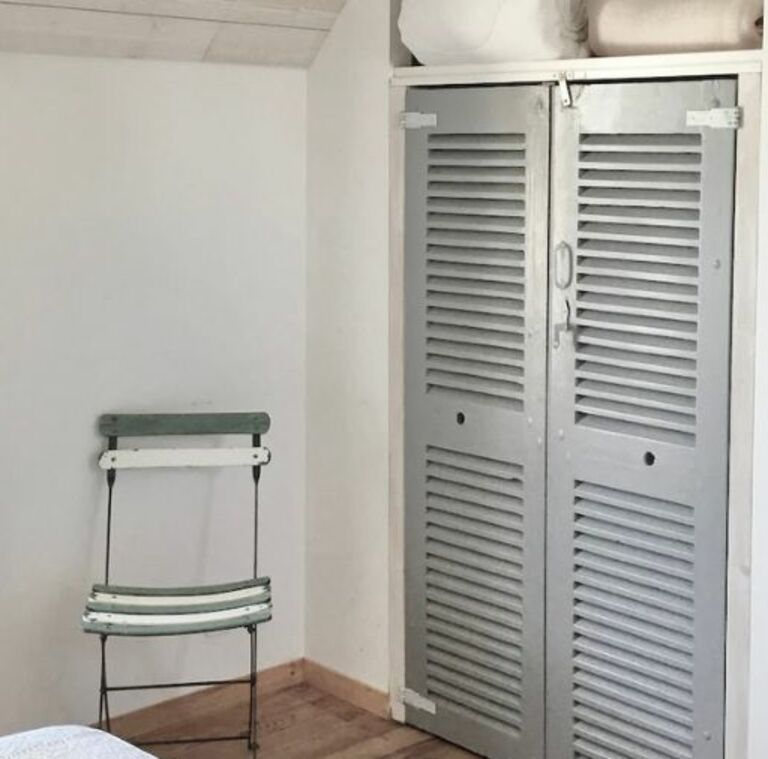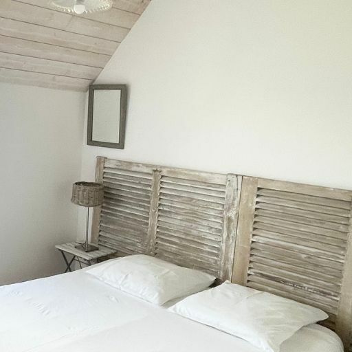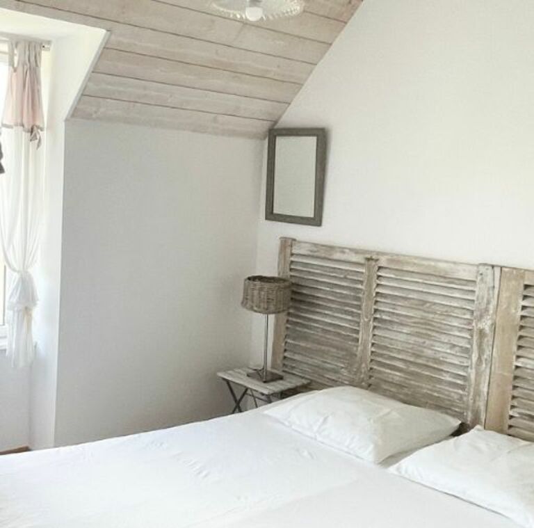 Die Schlafzimmer befindet sich im Erdgeschoss, es ist lichtdurchflutet und bieten einen wunderschönen Blick in den Garten und auf den Olivenbaum. Das gemütliche Bett von 160 x 200 cm mit einer bequemen Einstiegshöhe sorgt für erholsame Nächte und ein bequemes ein und aussteigen. Das Zimmer No.3 verfügt über eine Fußbodenheizung. Eine große doppelflügelige Terassentür mit direktem Ausgang zum Garten runden dieses traumhafte Zimmer ab. Ein "Scheunentor" zum schieben bieten Schutz vor zu viel Licht und ermöglichen einen entspannten Schlaf. Im Erdgeschoß befindet sich auch ein WC.